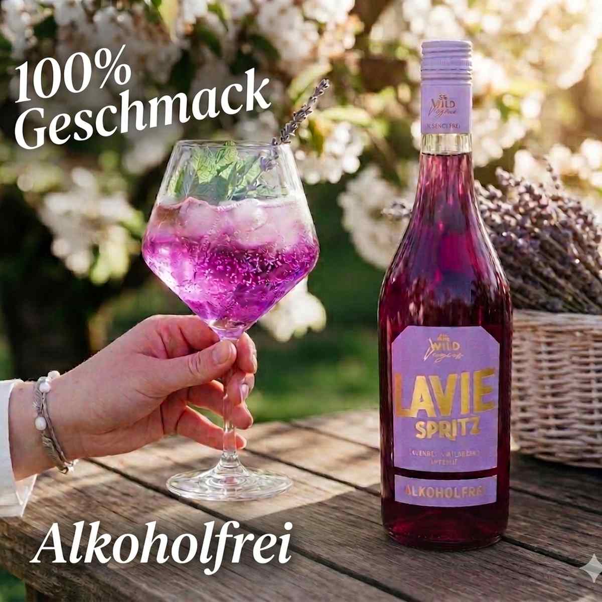 Wild Lavie Spritz – 100% Geschmack, 0% Alkohol, ab sofort verfügbar.“